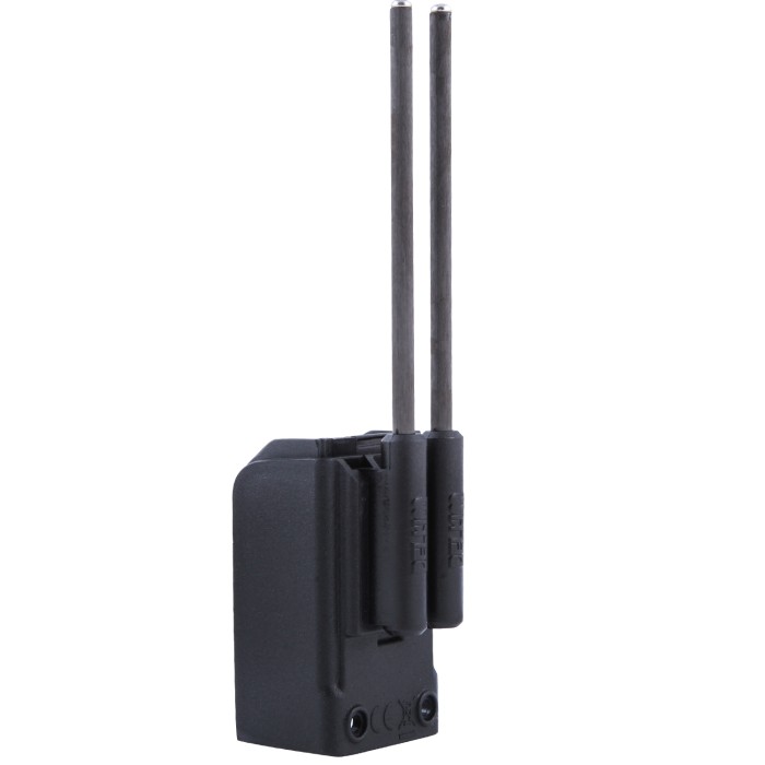 The Delkim Safe-D V2 Carbon Snag Bars are a bespoke design with a fixed replacement battery door that is moulded in tough nylon, that has the holders for the carbon uprights built in. This prevents the rods from pulling out on a severe take or with the windy climate. The carbon uprights can then be added or removed as required thanks to the slide design on the back/ battery door. This means that the holders remain permanently attached to alarms but still allow fitting of Delkim hard cases.