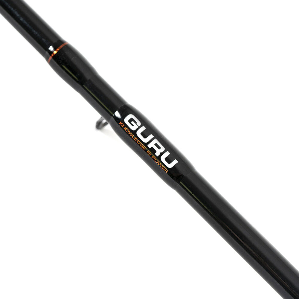 The rods are developed with 24T tensile carbon blanks to create a powerful progressive action when under pressure. This action has the power to hit long distances, but still maintains that fish-playing action to absorb lunges during the fight to eliminate hook-pulls. The oversized stainless frame guides with durable titanium oxide ceramics allow shock leaders to fly through with ease and eradicate frap ups. All this is matched with a downlocking DPS style reel seat, and an extended cork handle with Guru ergonomic EVA rear grip, which all creates the perfect balance to generate casting speed to achieve the extra distances required.