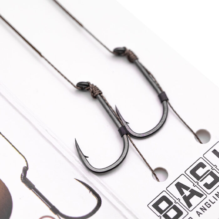 The BASIX Ready Tied Hair Rigs are ready to use straight out of the packet, all you need to do is add either a bottom bait or wafter, and you’re good to go! These rigs are tied using the camo green coloured BASIX Coated Hooklink material, with a small section stripped back by the BASIX Wide Gape hook to allow movement and increase hooking potential. They have a supple hair with a piece of silicone to hold it in place on the shank and help prevent tangles, and the length of that hair has been optimised for hookbait sizes that suit the size of hook you have selected.