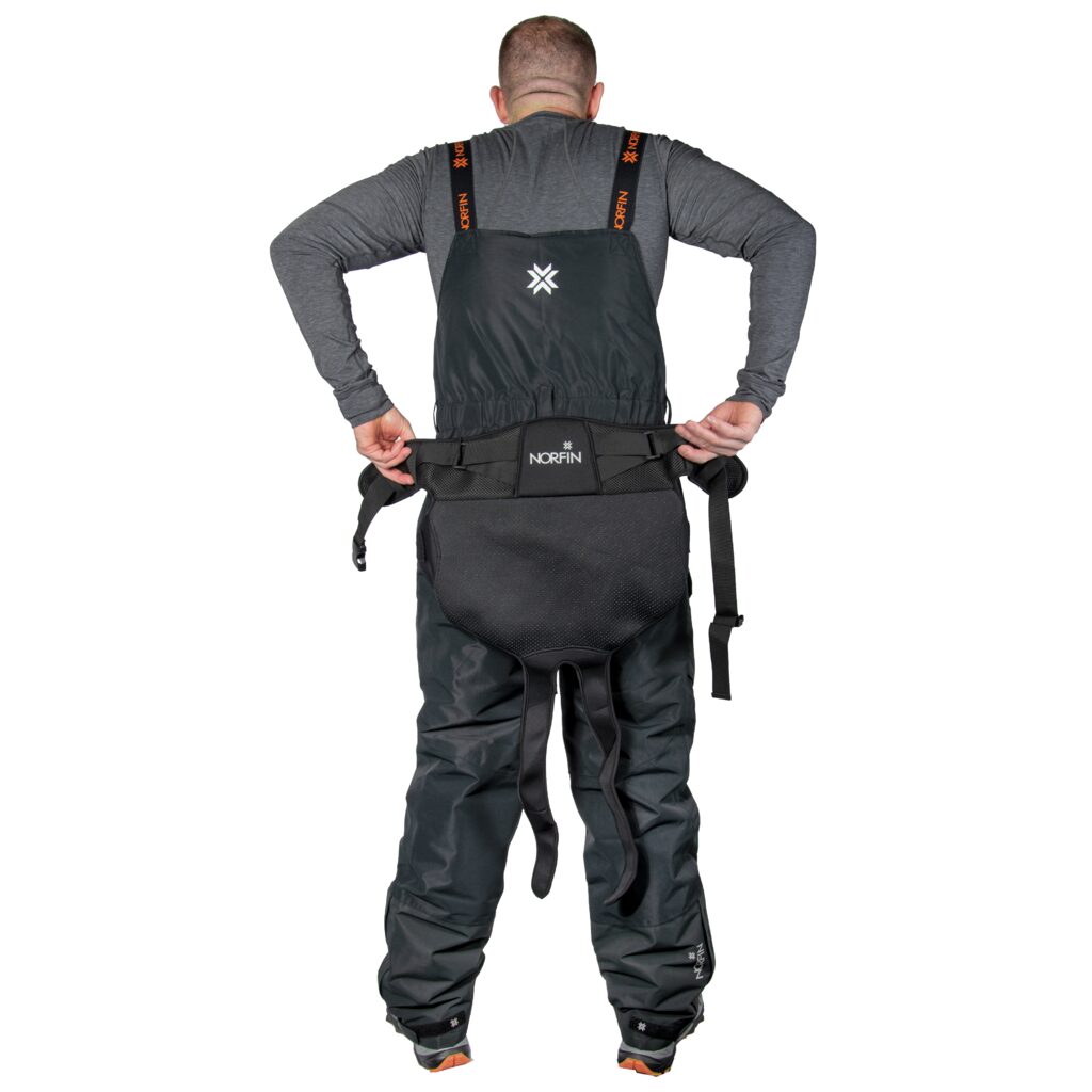 - Specialus kirpimas sėdimam darbui: kostiumo dizainas pritaikytas specifinei žvejybos iš valties padėčiai, todėl medžiaga nesitempia ir nesukelia diskomforto ilgai sėdint. Prailginta nugarinė dalis.