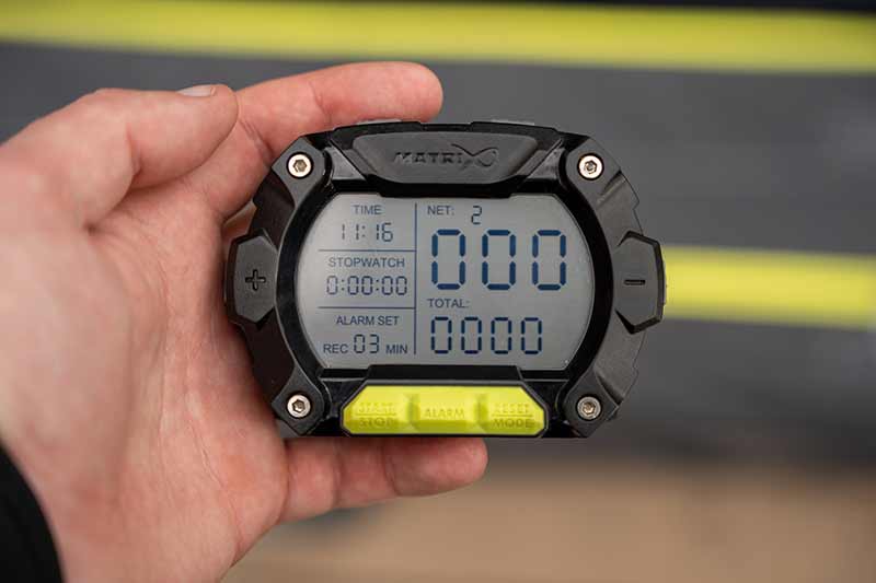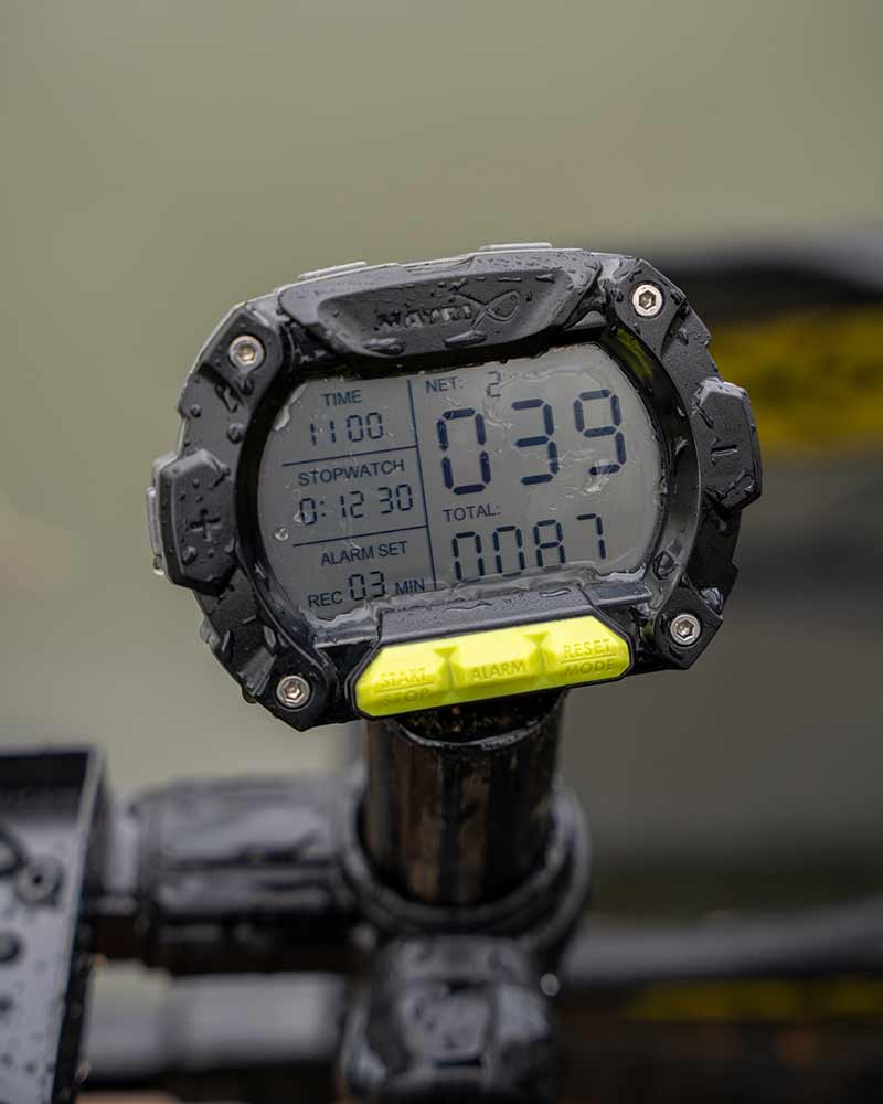 - Designed as an all-in-one stopwatch, alarm, fish clicker and weight tracker