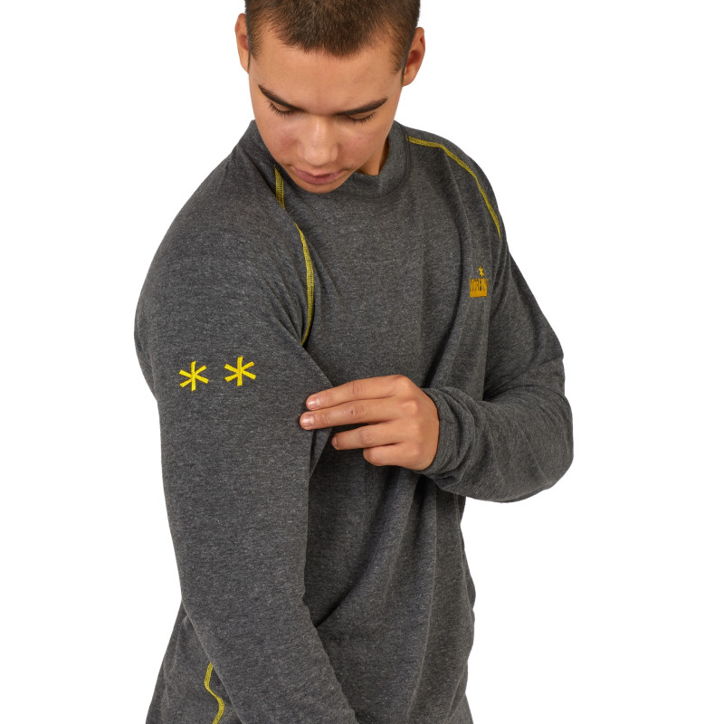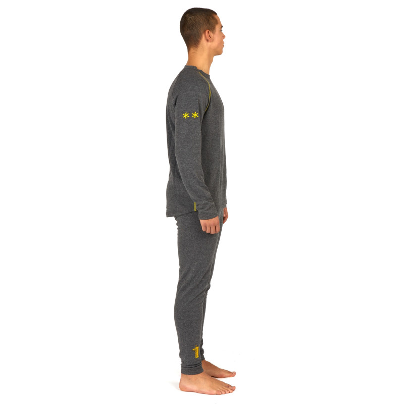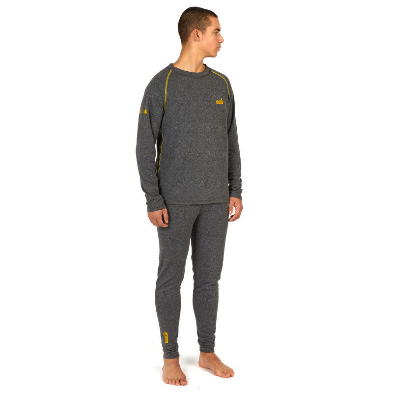 Dviejų sluoksnių mišri medžiaga užtikrina maksimalų komfortą, sausumą ir šilumos išsaugojimą esant skirtingam aktyvumo lygiui. Apatinis sluoksnis pagamintas iš natūralios medvilnės, leidžia jaustis komfortiškai, užtikrina kvėpuojančias savybes. Viršutinio sluoksnio medžiaga pagaminta iš poliesterio, kad būtų geriau valdoma drėgmė.